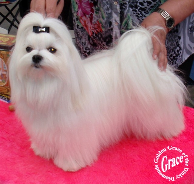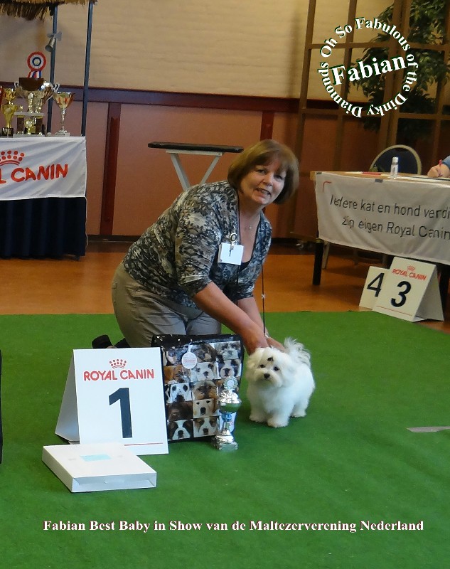 Oh so Fabulous of the Dinky Diamonds Best Baby op Kampioensclubmatch, nog maar net 4 maandenen de allerjongste Maltezer van de show!