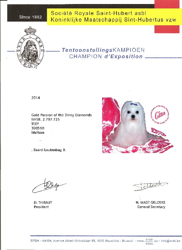(Ch.Diamond Gemeni a Fahrenheit x Ch.Gold Passion of the Dinky Diamonds, CW'12,NJK'11, Be.Ch.)